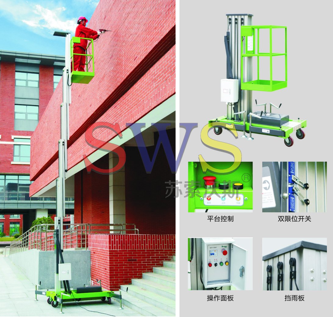 升降桅柱全部用用高強度鋁合金型材,整機重量輕,移動十分方便。
