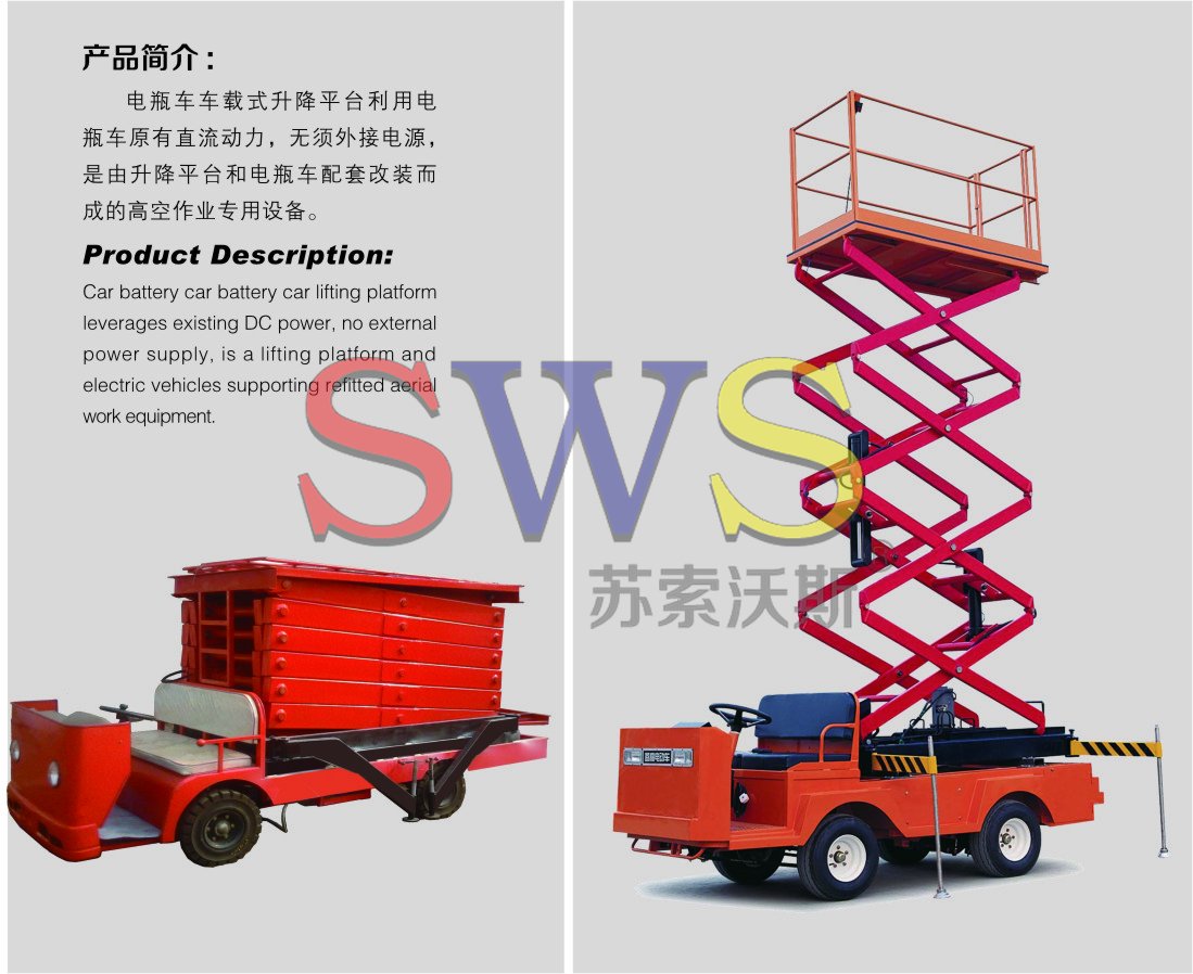 v   高空作業(yè)平臺(tái)與電瓶車(chē)或汽車(chē)組合在一起