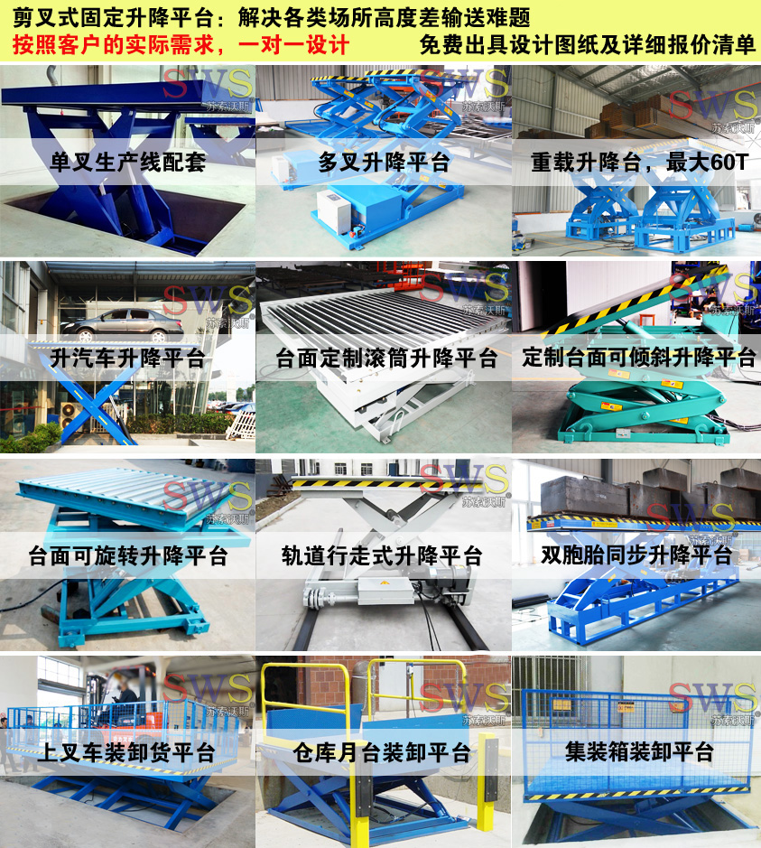 固定式液壓升降臺是一種升降穩(wěn)定性好,適用性廣的貨物舉升設(shè)備。主要用于生產(chǎn)流水線,自動線貨物高度差之間運(yùn)送無聊上線下線,工件裝配等升降作業(yè)。根據(jù)不同工作要求和使用環(huán)