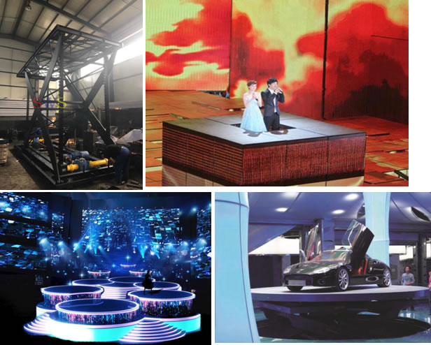 • 升降舞臺(tái)是在液壓升降平臺(tái)的基礎(chǔ)上,進(jìn)行設(shè)計(jì),根據(jù)不同需求,來(lái)滿足旋轉(zhuǎn),升降等方式,實(shí)現(xiàn)不同舞臺(tái)效果。
